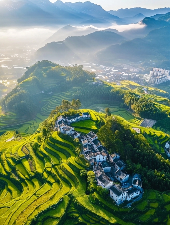 前往江岭,拍晨雾、看早霞、鸟瞰天上人家江岭。这是婺源田园风光的代表,从江岭开始,公路始终在山间盘旋,从江岭向下看,只见层层梯田曲折的线条,山谷盆地中的小河,河边聚集的三、四个村庄,四周围绕着青山,构成了一副极美的婺源农村风光画卷。
