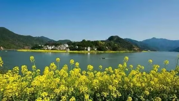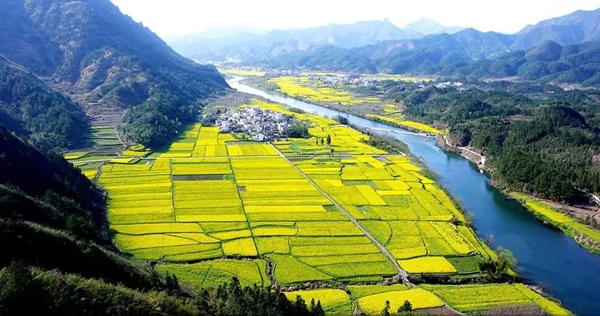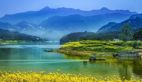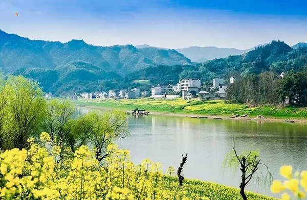 因沿江有青翠山峰、古朴村庄、烂漫山花和金黄的油菜,所以这一路叫“山水画廊”。在沿河的小路或者田间行走,比坐在船上“轻舟行过”更带劲,满脸都是春风拂过的痕迹。沿途即可探访古老的徽派村落,又可以观赏新安江上游的秀美景色,倒映在江面的村落仿佛就是一幕幕美丽的自然画卷,新安江山水画廊两岸生态环境极佳,呈现高山林、山中茶、低山果、水中鱼的立体生态格局,与掩映其间的粉墙黛瓦的古村落、古民居交相辉映,是画里青山,水中乡村,构成一幅美妙的山水国画。