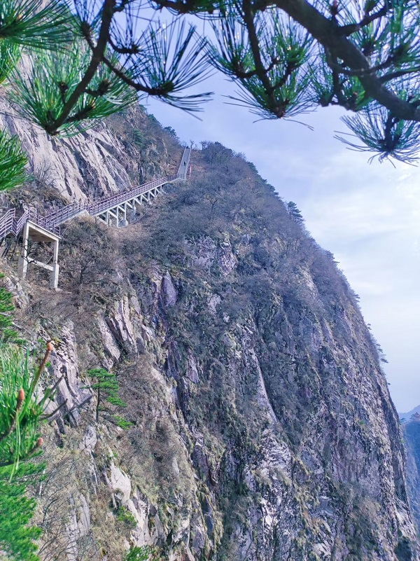 经过优化后,去掉公路部分改由景交车往返,全程约10公里。其中一段为野线,其它为景区步道。爬升约1000+米,有一定挑战,体能不佳的小伙伴可选景区索道上下。