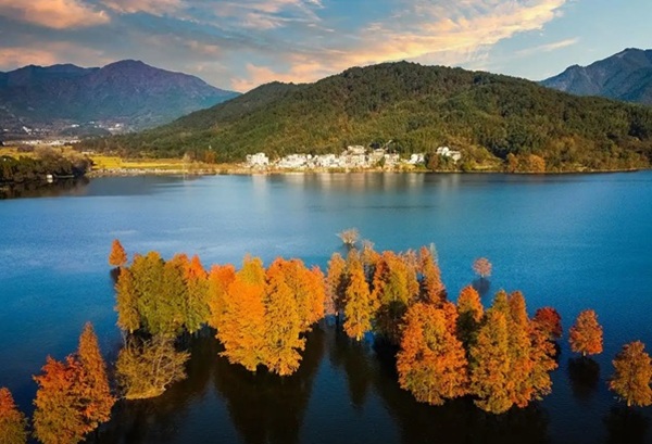 位于世界文化遗产宏村向东约2公里处,湖内风光秀丽、 景色怡人。春天的奇墅湖,湖岸桃花、梨花、油菜花盛开,最美晨曦日出时光,水雾似云海湧动,宛如轻烟飘渺,拂绕着湖中的水杉林。远处白墙黛瓦的徽派民居若隐若现,相映成梦幻般的仙境。